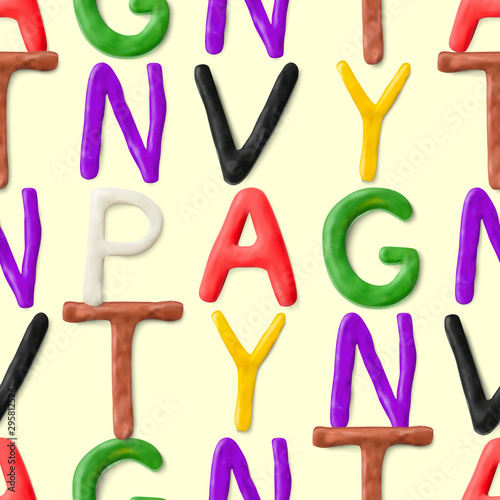 Fototapeta premium Seamless pattern with alphabet. Handmade modeling clay letters. Realistic 3d...