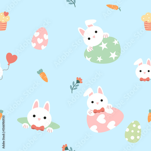 © วิภาวี ศรีเงิน, Obraz premium Seamless pattern with art design elements, and colorful Easter eggs.