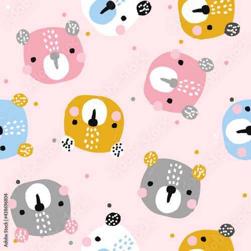Fototapeta premium Seamless pattern with bears. Cute kids print. Vector hand drawn illustration.