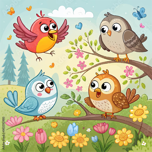 © jabir, Obraz premium seamless pattern with birds and flowers
