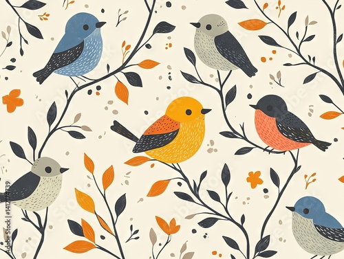 © Kvarta, Fototapeta premium seamless pattern with birds, set of birds on a white background