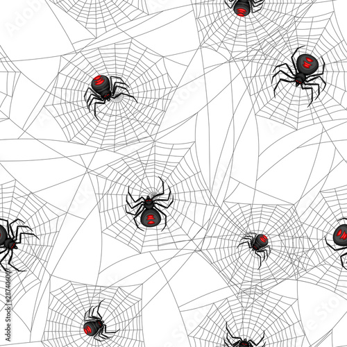 © incomible, Obraz premium Seamless pattern with black widow spiders.