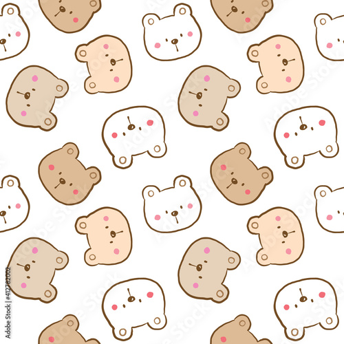 © Supannee, Obraz premium Seamless Pattern with Cartoon Bear Face Illustration Design on White Background