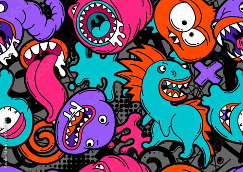 © incomible, Obraz premium Seamless pattern with cartoon monsters.