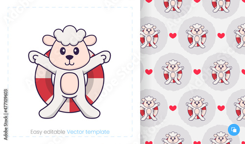 © Turn, Fototapeta premium Seamless pattern with cartoon sheep on white background. Can be used on packaging paper, cloth and others.