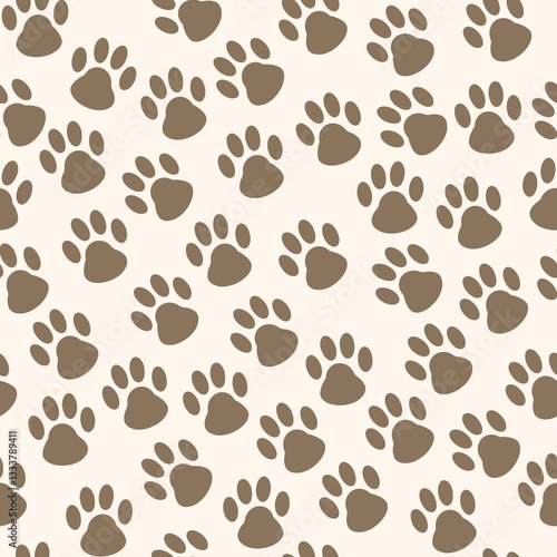 Fototapeta premium Seamless pattern with cat tracks on beige background