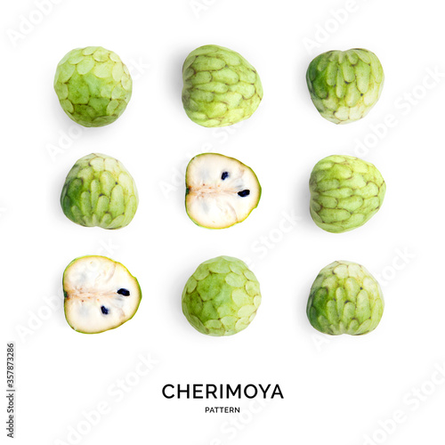 Fototapeta premium Seamless pattern with cherimoya. Tropical abstract background. Cherimoya on the white background.