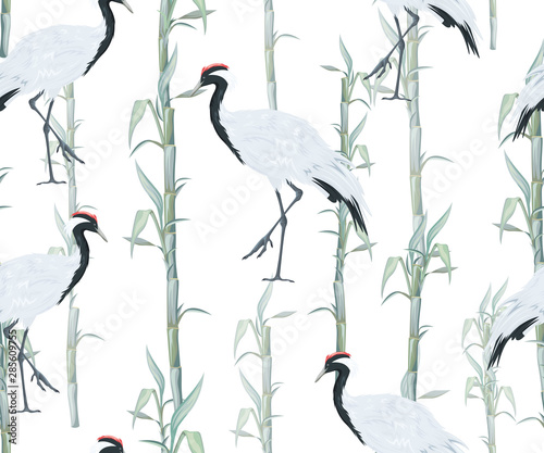 Fototapeta premium Seamless pattern with Chinese cranes and bamboo