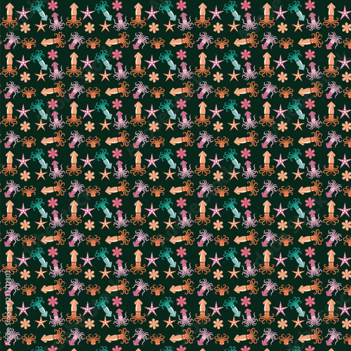 Obraz premium Seamless pattern with circles and dots on a black background.
