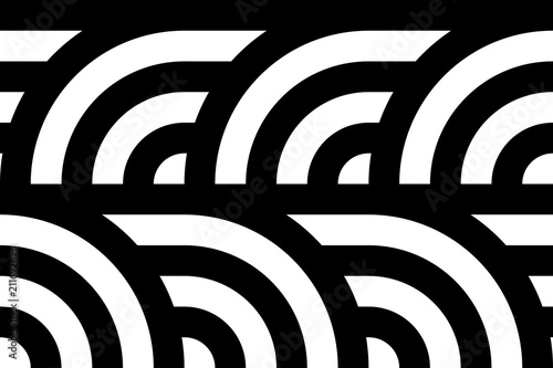 © Divin, Obraz premium Seamless pattern with circles and striped black white straight lines. Optical illusion effect. Geometric tile in op art style. Vector illusive background for cloth, textile, print, web.
