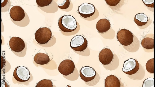© Camalia MN, Obraz premium Seamless pattern with coconuts on beige background
