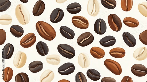 © Galib, Obraz premium Seamless pattern with coffee beans on white background.