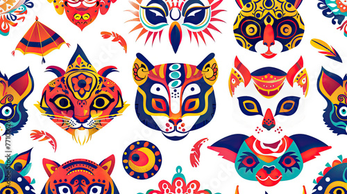 Fototapeta premium Seamless Pattern with Colorful Animal Masks
