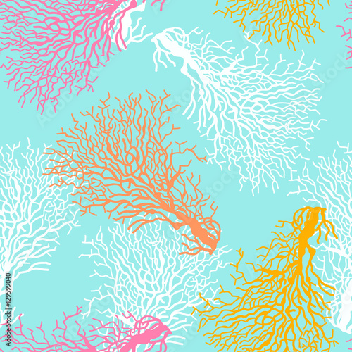 © LilaloveDesign, Naklejka premium Seamless pattern with colorful coral reef.
