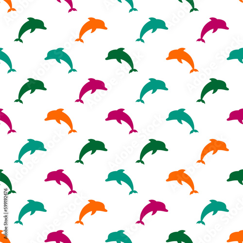 © FRESH TAKE DESIGN, Obraz premium Seamless pattern with colorful dolphin