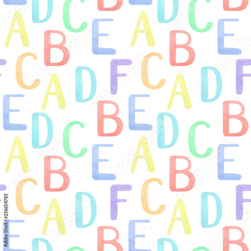 © Vasilina Ryabtseva, Fototapeta premium Seamless pattern with colorful letters. Hand drawn. Isolated on white. Color of background can be changed