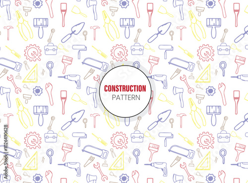 Fototapeta premium Seamless pattern with construction tools icons - tools kit seamless pattern