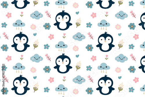 © Leklife, Obraz premium seamless pattern with cute animals y on white background- vector illustration,