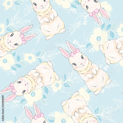 Fototapeta premium Seamless pattern with cute cartoon bunny. Baby pattern.