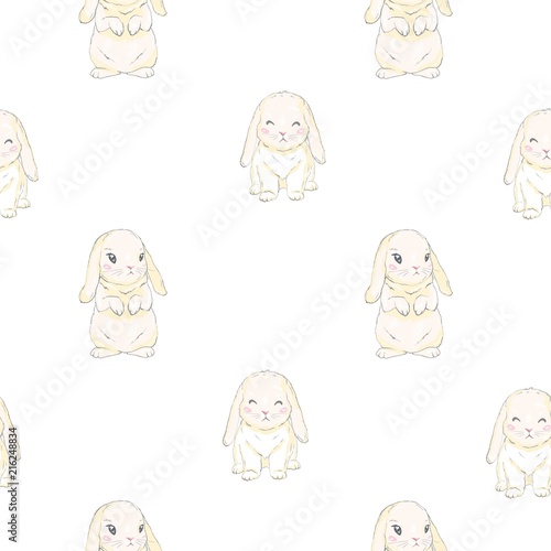 Obraz premium Seamless pattern with cute cartoon bunny. Baby pattern.