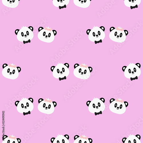 Obraz premium Seamless pattern with cute cartoon panda. Vector illustration.
