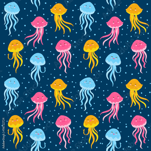© evgeniya_m, Naklejka premium Seamless pattern with cute jellyfishes