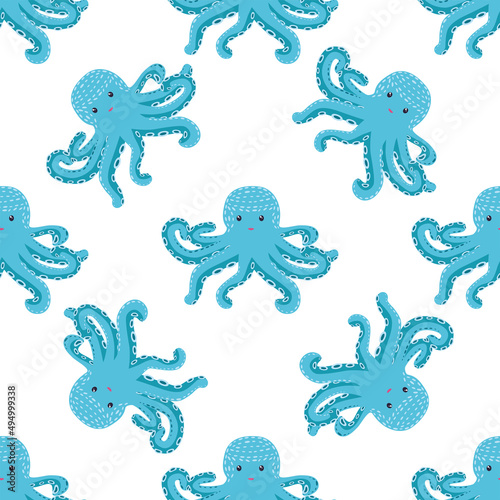 Obraz premium Seamless pattern with cute octopus, seaweed and pearl. Trendy nursery background