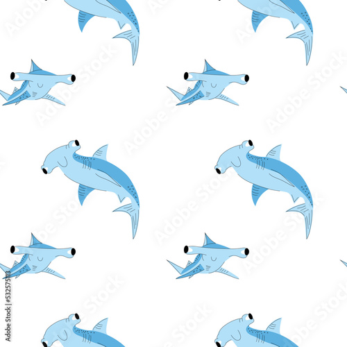 Fototapeta premium Seamless pattern with cute shark. Hand drawn illustration in scandinavian style for children.