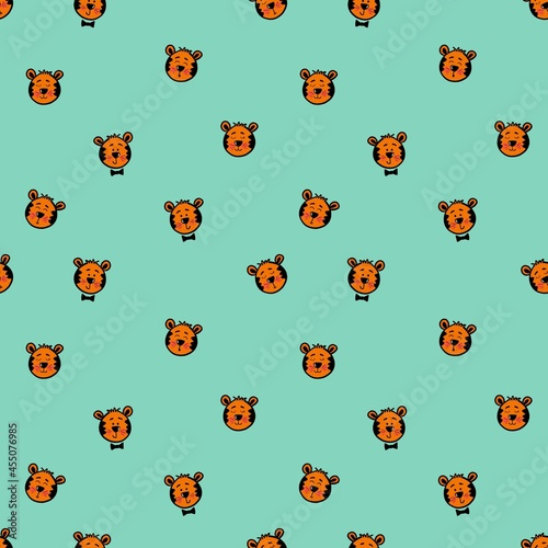 Fototapeta premium Seamless pattern with cute tiger cubs. Design for children's clothing, fabrics and other items. The illustration is hand-drawn with live lines in the kartun style.