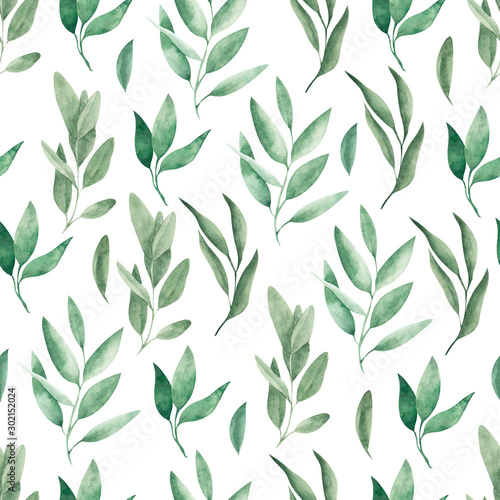 © марина васильева, Obraz premium Seamless pattern with delicate leaves, isolated on white background