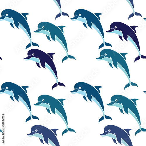 © maritime_m, Naklejka premium Seamless pattern with dolphins on a white background.