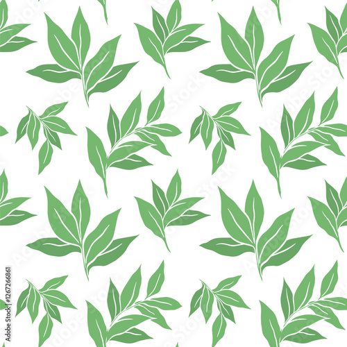 Fototapeta premium Seamless pattern with drawn green plants. Green leaves. Flora and nature. Design for background, label, decoration and design. Vector illustration