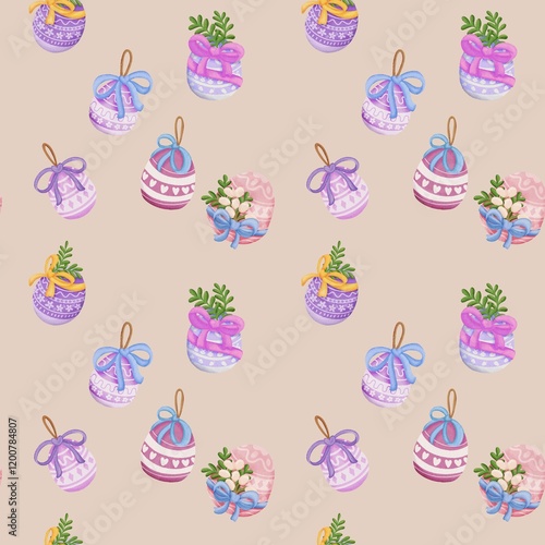 © May Chamai, Fototapeta premium seamless pattern with Easter Theme Light brown background