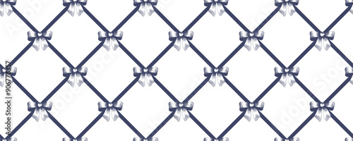 Fototapeta premium Seamless pattern with engraved bows and ribbons. Repeating background with...