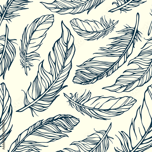 © irenemuse, Obraz premium Seamless pattern with feathers
