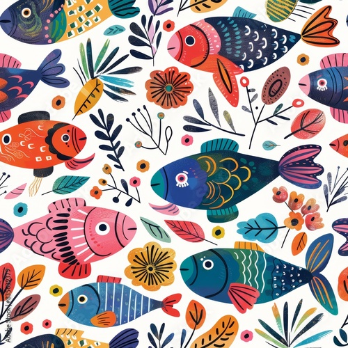Fototapeta premium Seamless pattern with fish. Lovely, pretty pattern of fish and flowers,...