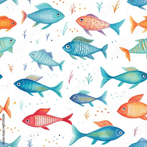 © Al, Naklejka premium seamless pattern with fish. Print for fabric, wrapping paper design. background. children's wallpaper. Sea, ocean concept