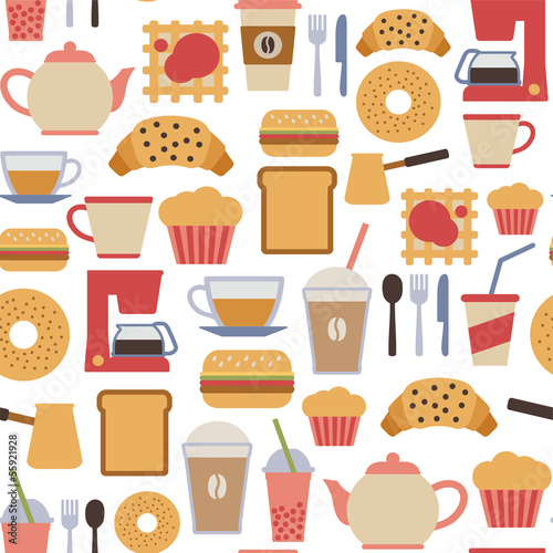 © yarrowbuttercup, Fototapeta premium seamless pattern with flat cafe icons
