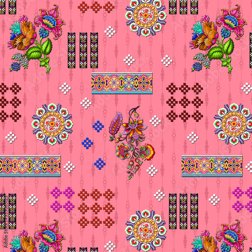 © Muhammad zubair, Fototapeta premium seamless pattern with flowers allover digital pattern illustration design