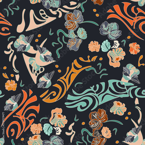 Fototapeta premium seamless pattern with flowers and birds
