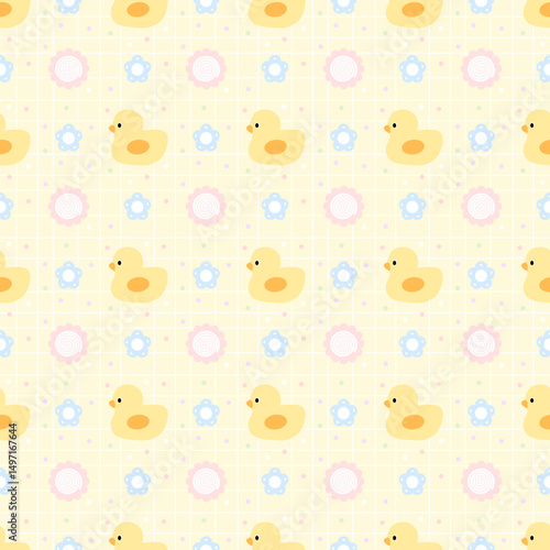 © Anupa S, Fototapeta premium seamless pattern with flowers and duck
