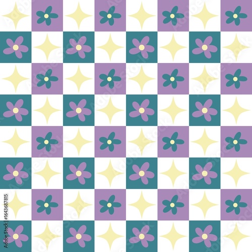 © snowyart, Obraz premium seamless pattern with flowers and twinkling