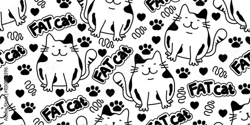 © ano, Fototapeta premium Seamless pattern with funny doodle cats with heart in paws. for print or sticker design. Adorable kawaii animals on white background.