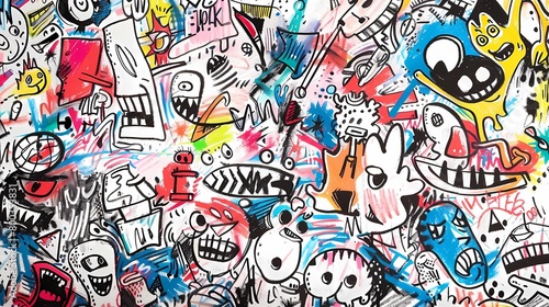 © jbstocks, Obraz premium Seamless pattern with funny doodle monsters Handdrawn illustration Generative AI illustrations