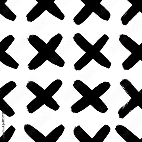 Obraz premium Seamless pattern with hand drawn black and white cross. Paint objects background for your design. Vector art drawing. Brush grunge illustration