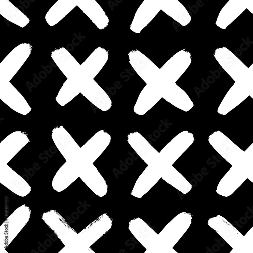 © pomolchim, Obraz premium Seamless pattern with hand drawn black and white cross. Paint objects background for your design. Vector art drawing. Brush grunge illustration