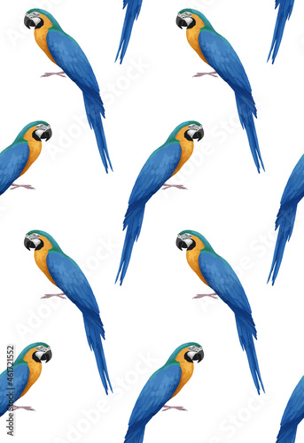 Obraz premium Seamless Pattern with hand-drawn Parrot, digitally colored, vector
