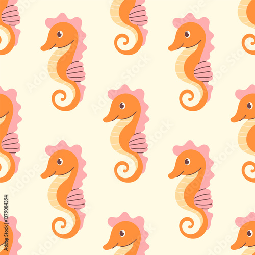 Obraz premium Seamless pattern with hand-drawn seahorses