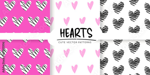© Lyasya, Fototapeta premium Seamless pattern with hearts and grunge texture. Fabric print for children