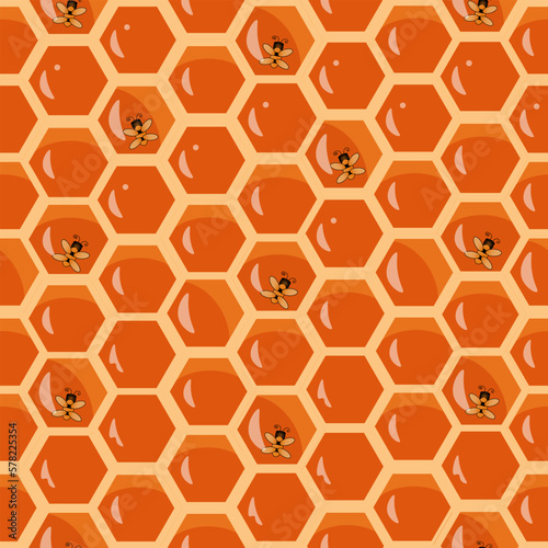 Obraz premium Seamless pattern with honeycombs and bee.